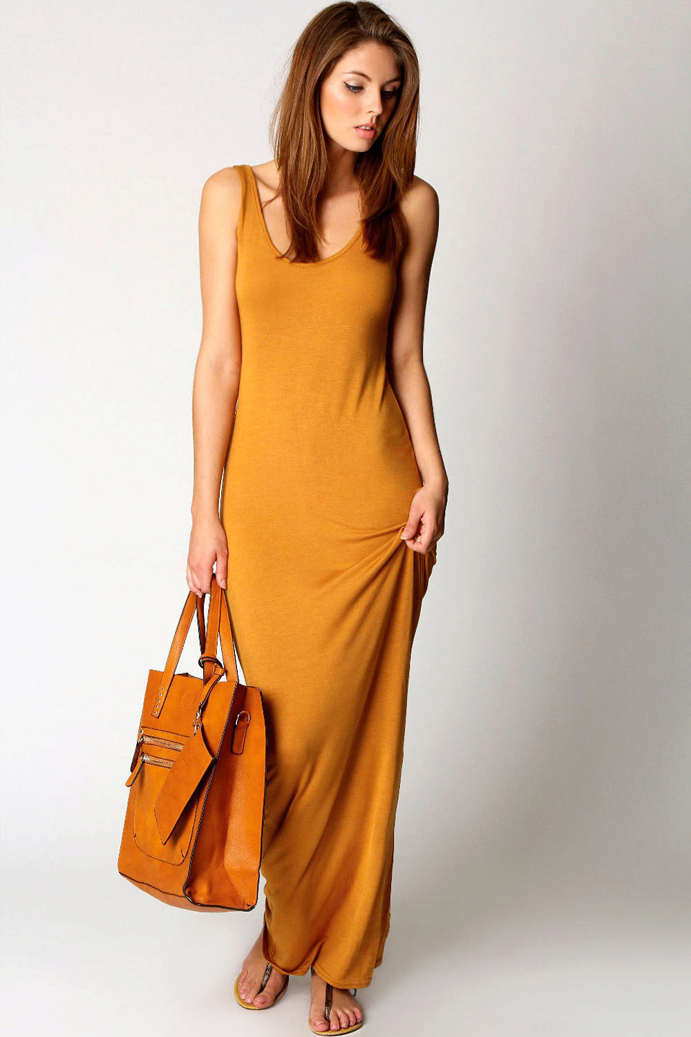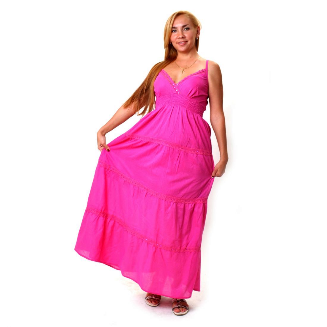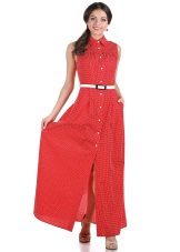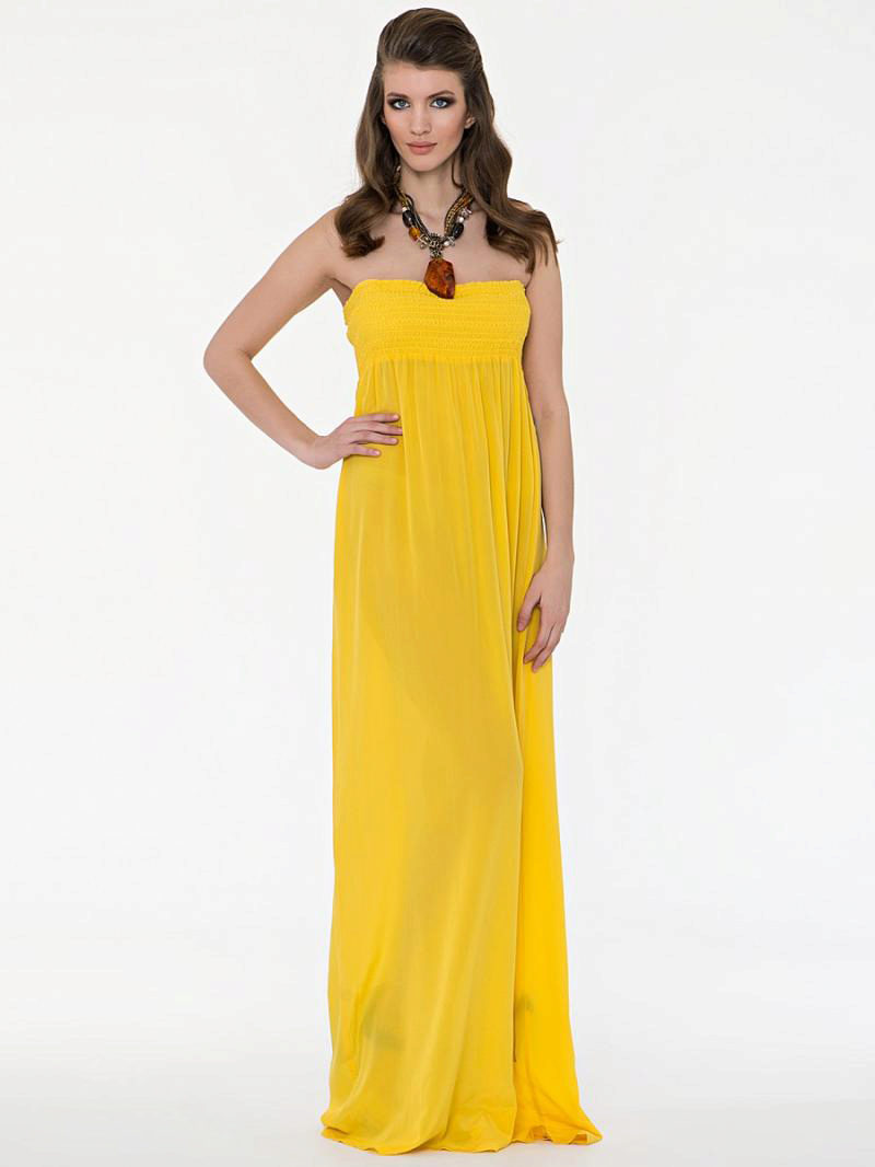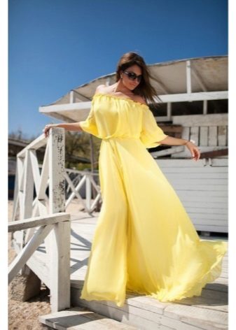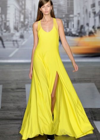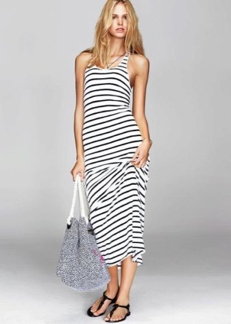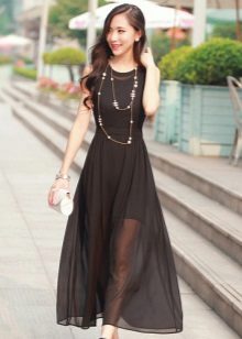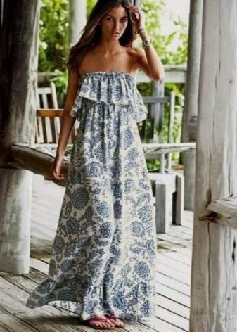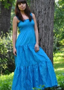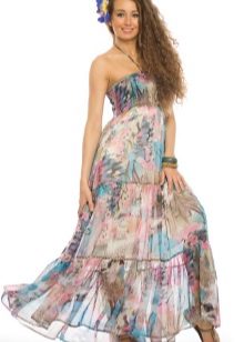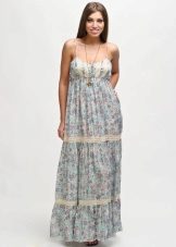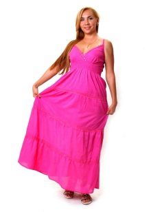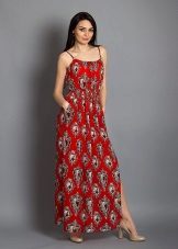 The dress - dress in its appearance and cut looks like an ordinary dress to the floor, the only difference is the absence of sleeves. The cut of such a sundress can be more restrained - round or frank v-shaped.
