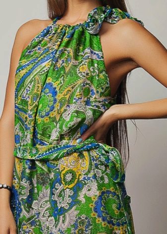 Among the prints on sundresses most beautiful look flowers, all sorts of patterns in oriental style, as well as a strip and cell.