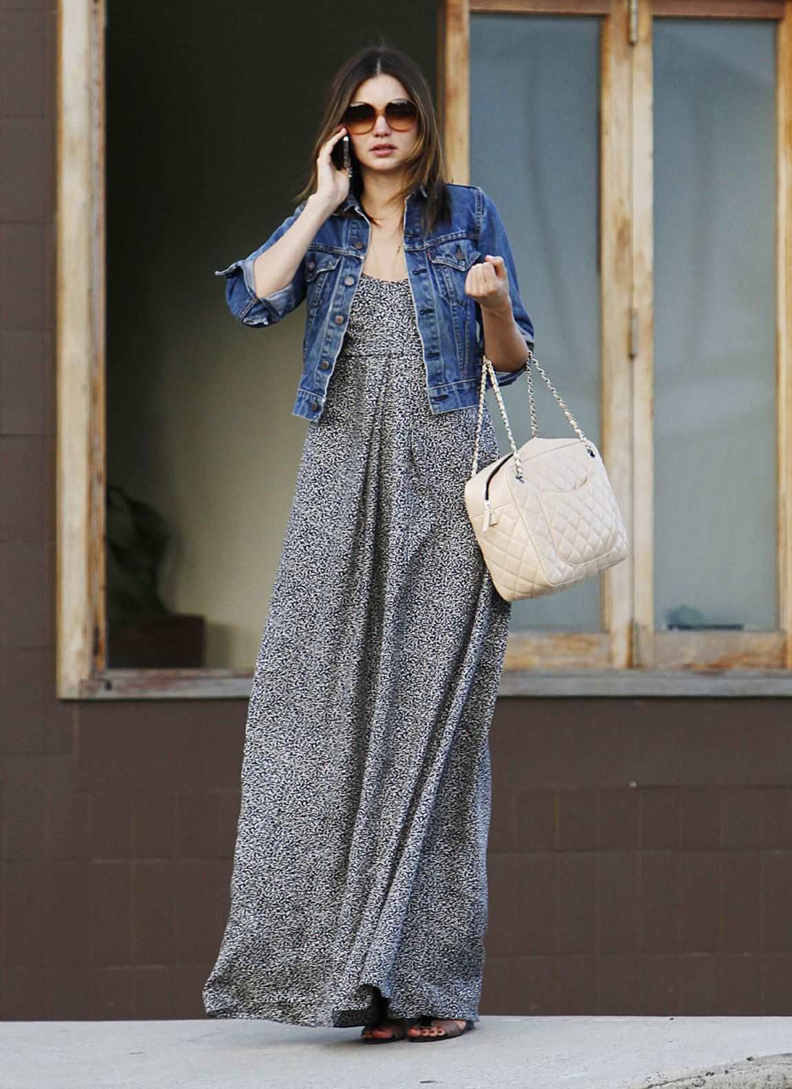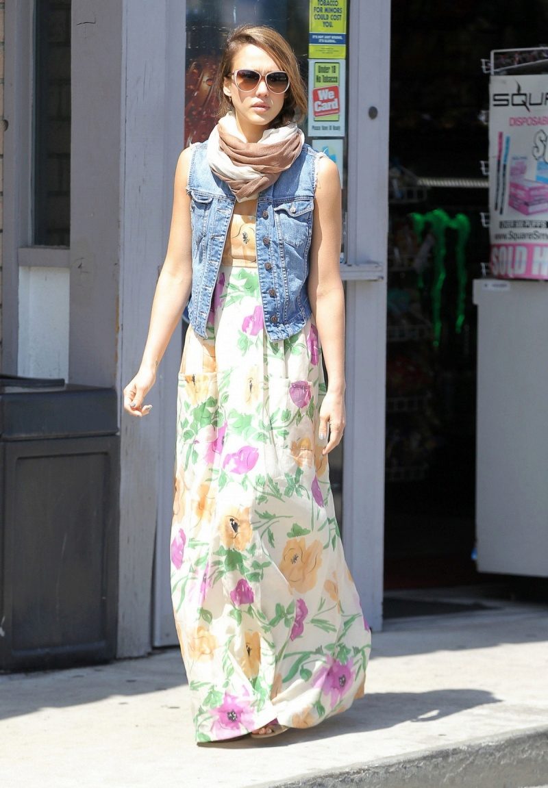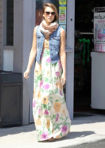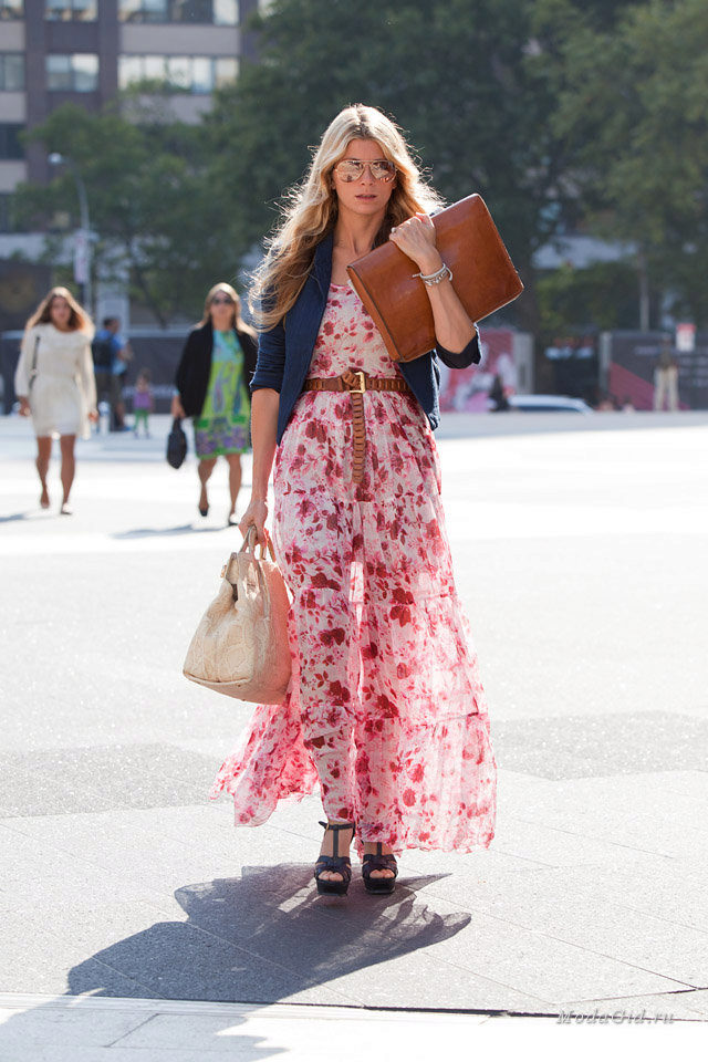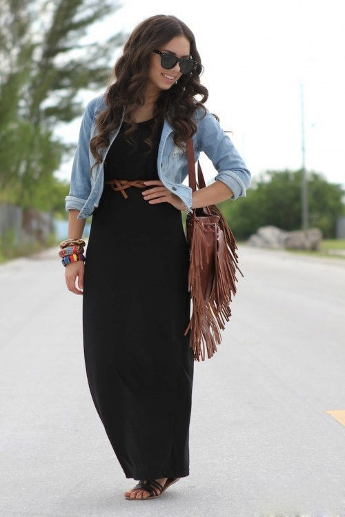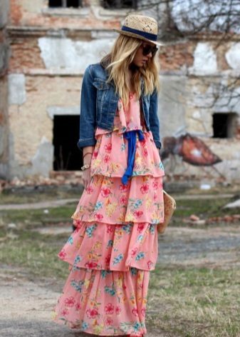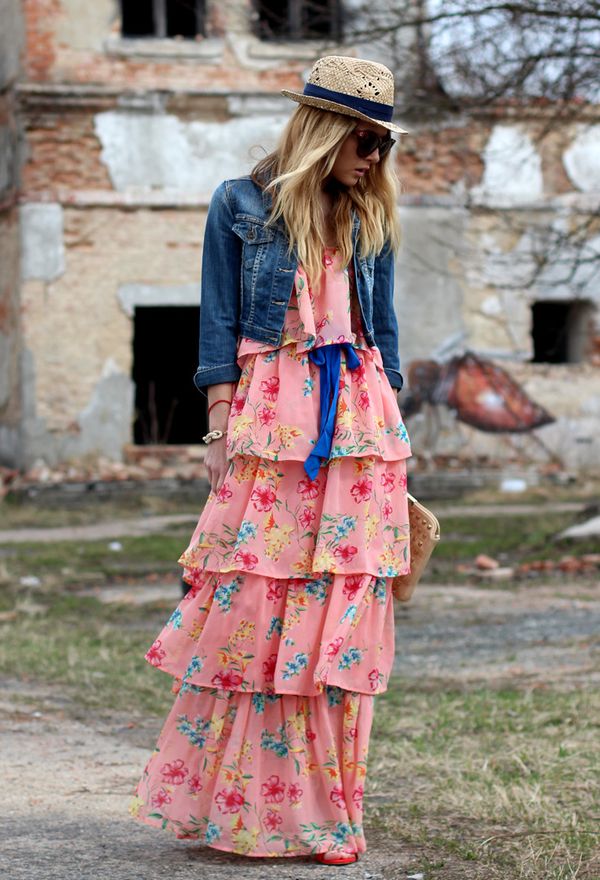 In cool weather, you can wear a stylish classic-length jeans or a denim bolero, which will perfectly fit into the image with a long sundress.