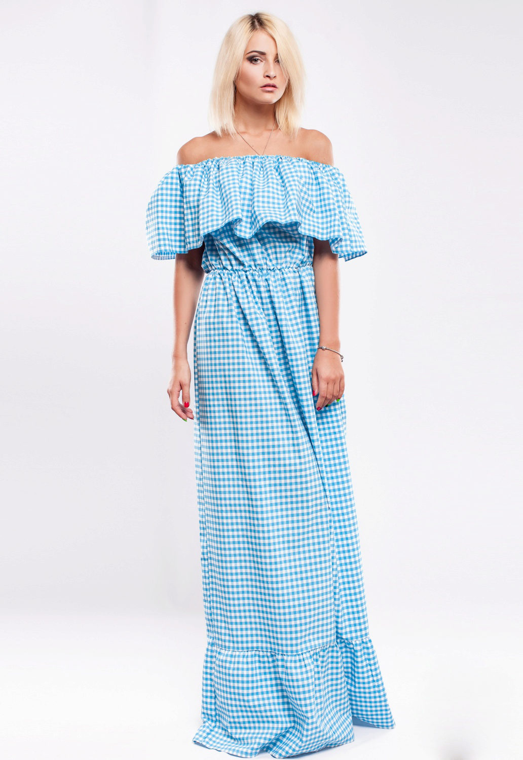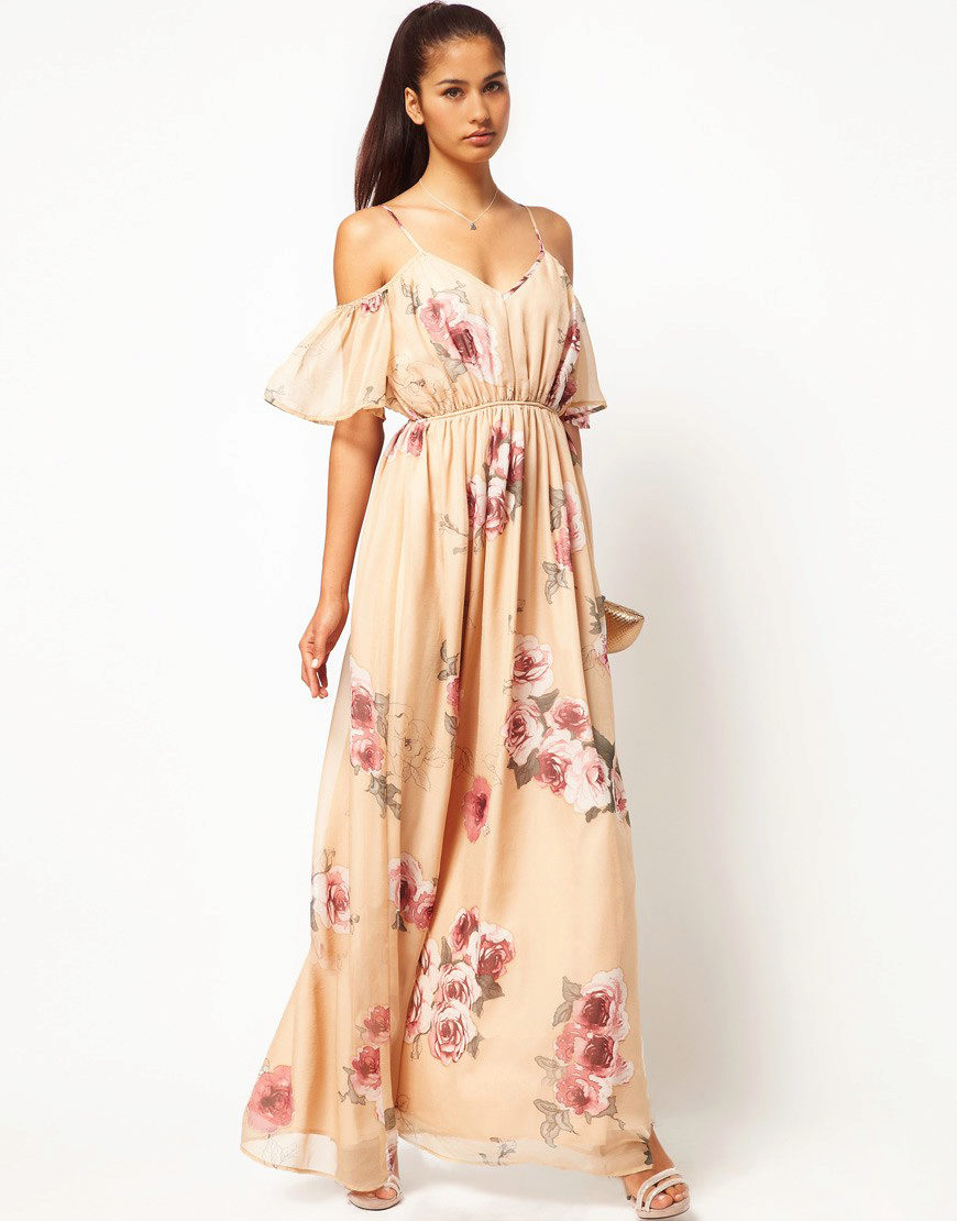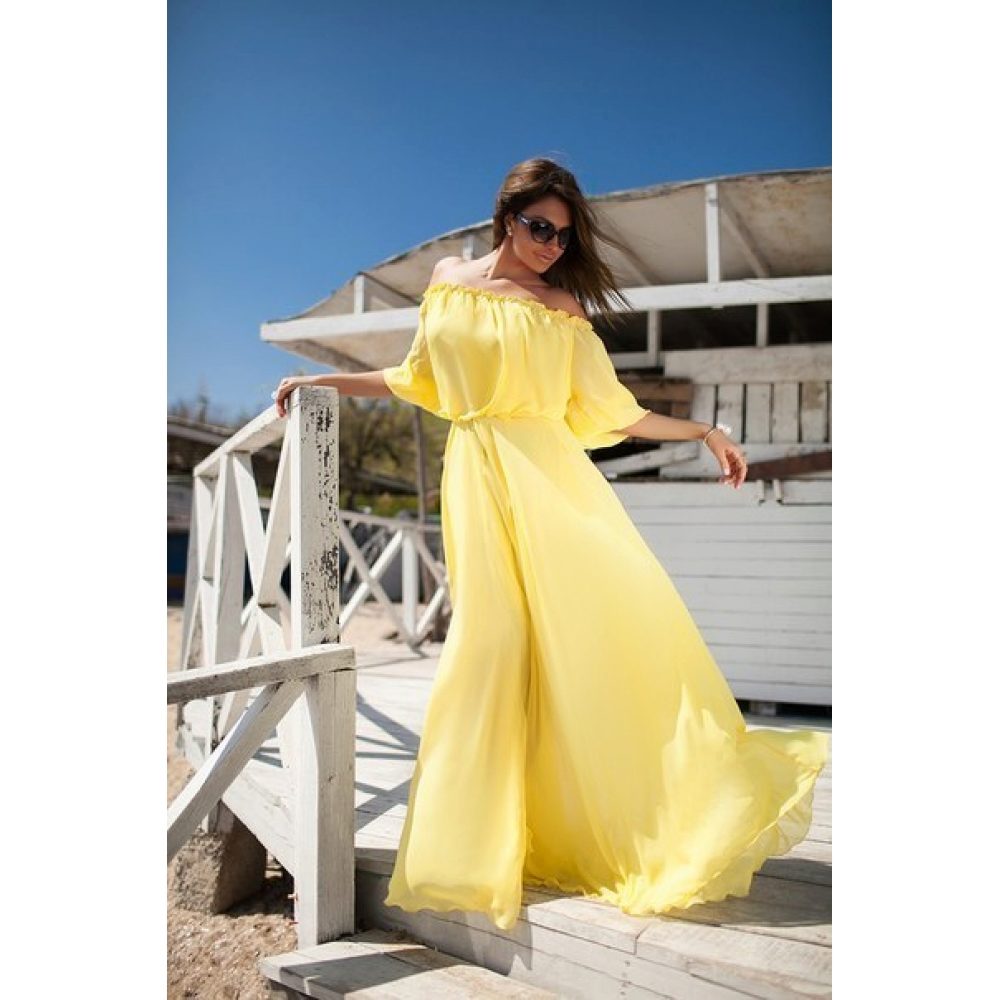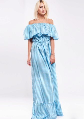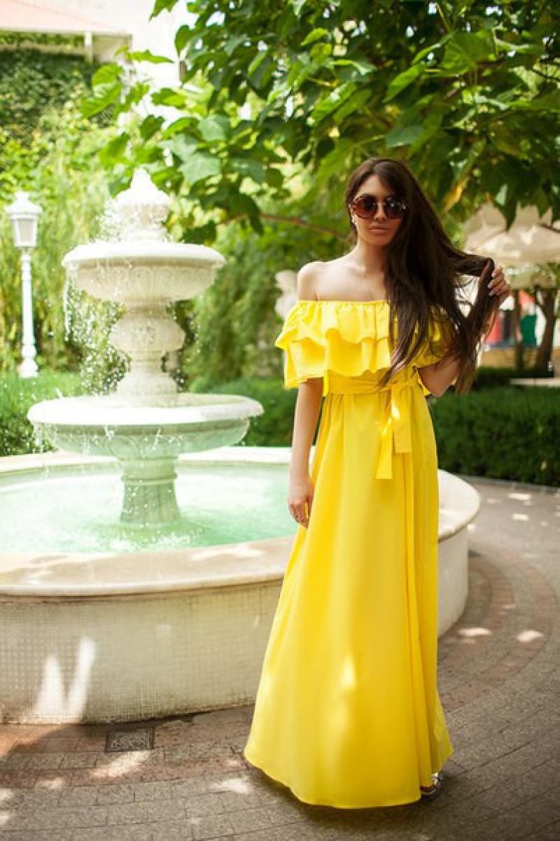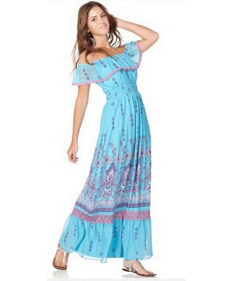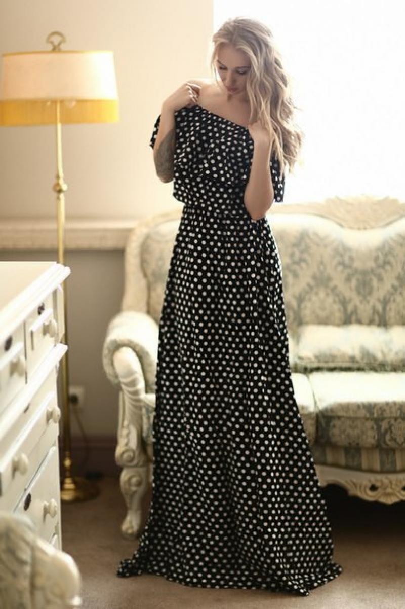 A bare shouldered sundress is the height of femininity and tenderness, since the outlines of fragile shoulders and collarbone looks just incredible.