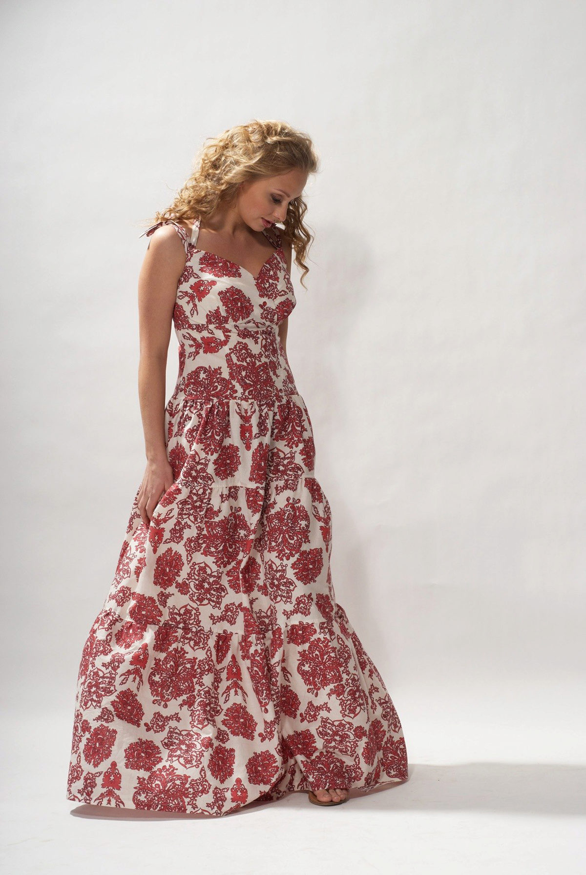 The model of the Greek sundress, as a rule, has a straight cut and a belt, as a decoration painted on the waist. Often, such models of sundresses are presented in historical films, as the attire of ancient Greek queens and goddesses.