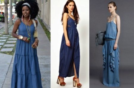In addition, sundresses are made from denim thin fabric, which is called denim. Such models look interesting and are great for creating a weekend look.