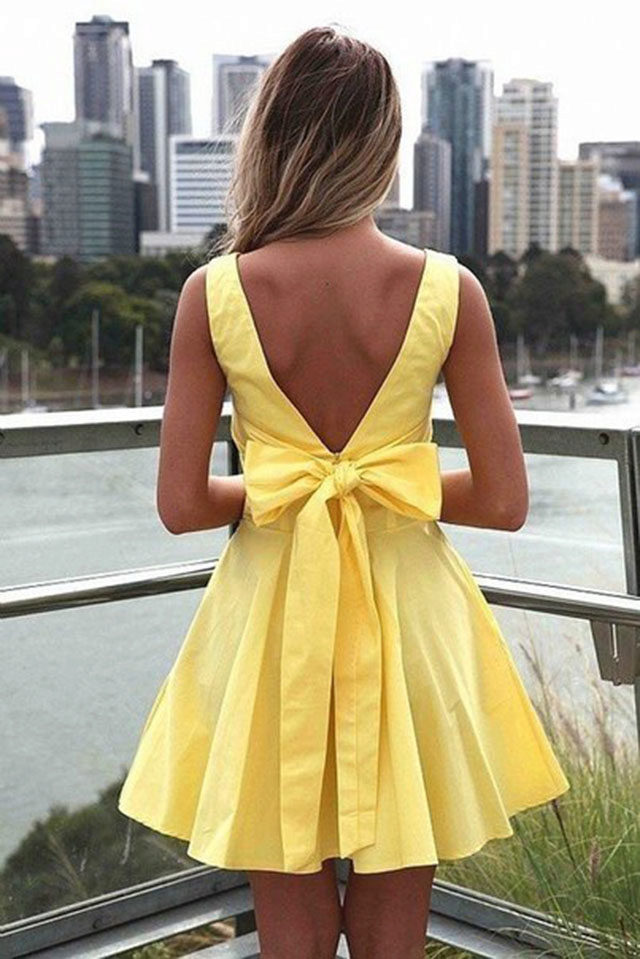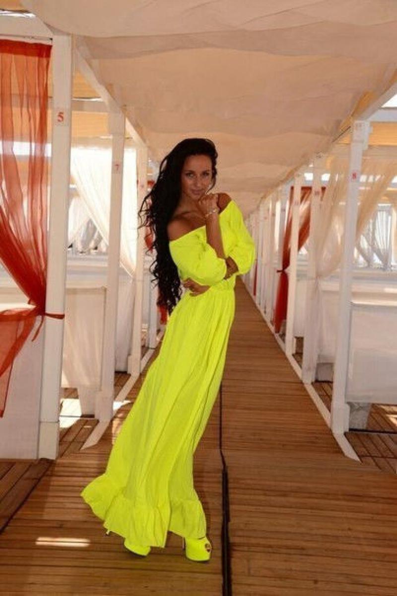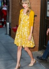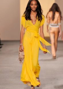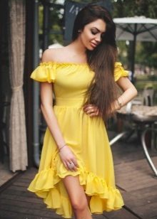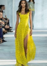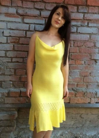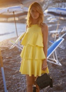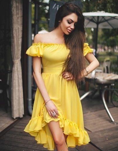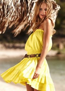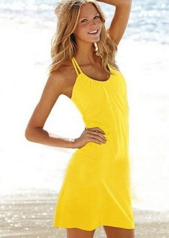Such sundresses in yellow color are a fine line between sexuality and excessive frankness. Young cheeky girls allow themselves to wear a simple T-shirt or a brutal top for such a sexy and sophisticated dress.