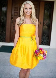 But on the age you can not pay attention, because the yellow dress is equally well suited mature ladies, women, girls and young girls. So without fear, choose any shade, from the brightest and even hot yellow to the deep, calm sand.
