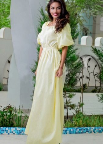 Summer yellow dress, which is worn on a hot day, does not need any special additions, it looks self-sufficient and creates a complete image.