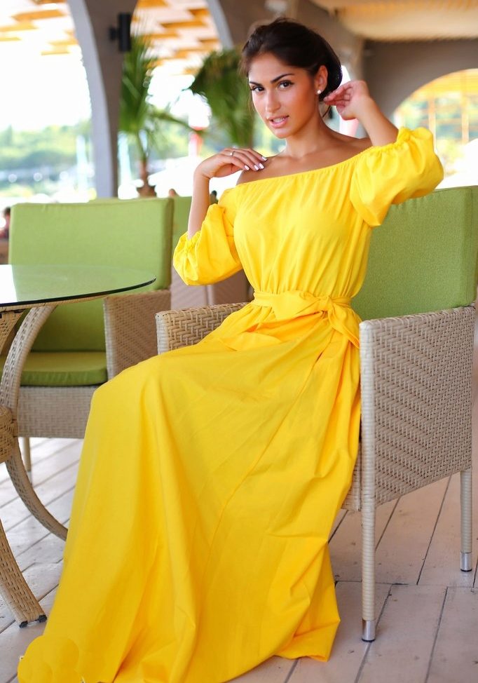 Each of the shades of yellow will be relevant, so when choosing a sundress of the necessary colors, you can safely focus on your color type, shape and personal preferences.