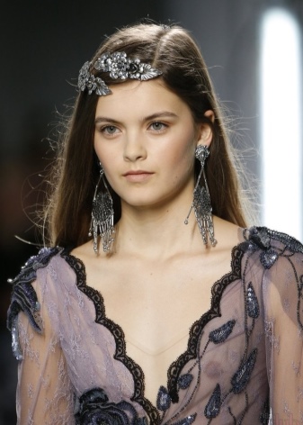 For girls with long hair it is much easier to find stylish decorations of large sizes. Hair can be collected in a bun or lay a high horse's tail to draw attention to the beautiful decorations.
