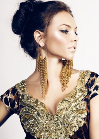 If you decide to wear gypsy earrings for a holiday, then it is better to refuse a necklace or chain. The neck should be left undecorated. These earrings should not be combined with shiny dresses.