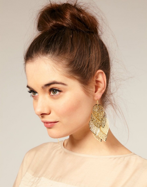 To embody the evening bow, you should wear gold earrings, complemented with precious stones. For meeting with friends or going to the club, bright jewelry is an excellent choice.