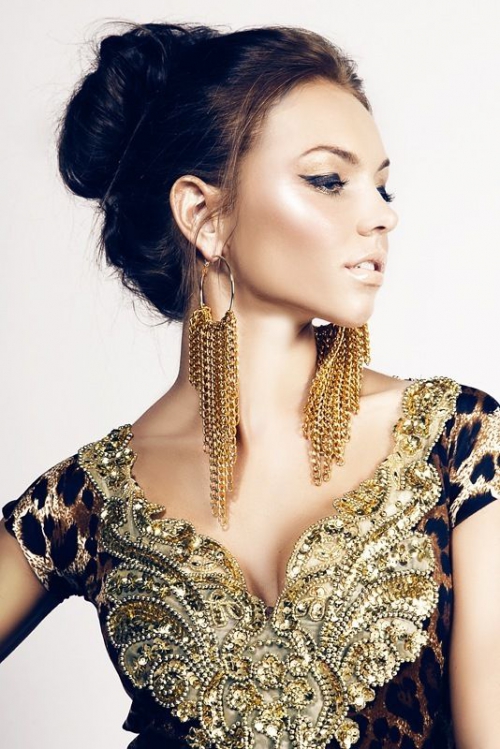 Owners of short hair need to carefully pick up the gypsy earrings to your image. These massive decorations do not look beautiful with every hair style.