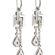 The latest collections include miniature earrings of unusual shape, which most effectively emphasize the modern bow of the urban women of fashion. Smooth lines in combination with correctly exposed highlights with the help of geometry knowledge gives precious metal items even more charm. It should be borne in mind that the products of this brand are also focused on tastes and on a more mature generation looking for classic charm earrings.