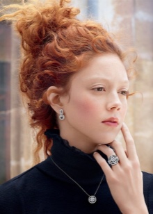 The collections include earrings made of gilded material using rhinestones and cubic zirconias. Bright accents are most often achieved through the use of plastic or natural stones in the manufacturing process.