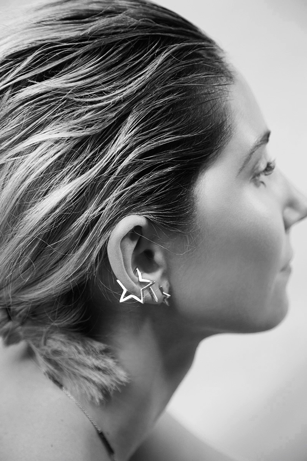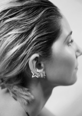 A charming Monroe earring perfectly complements the romantic outfit with open shoulders. With such a piercing will be combined charming makeup in dark colors.