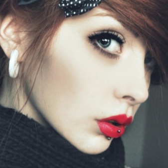 Punctures on the lip, as a rule, are complemented by labrets. These accessories meet all safety requirements. The disc in these earrings is securely attached to the base, so you do not swallow it accidentally and do not hurt the tongue about it. Often used for the lips of the spiral (another name - twists).