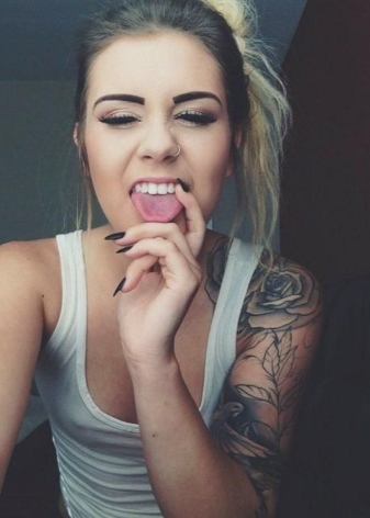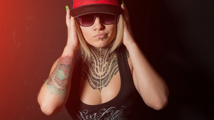 The young ladies who have several punctures on the nose and lips look very bright and original. Such beauties can emphasize their spectacular beauty with a simple monophonic top, a stylish baseball cap and complement the image with sunglasses.