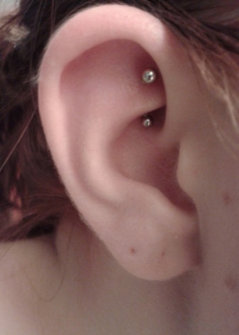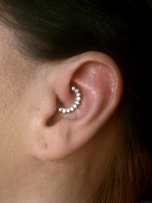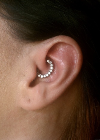 - A piercing called dace is performed in the place of the protruding cartilage, which is located very close to the auditory canal. For this puncture the ideal solution would be rings, half rings or curved rods.