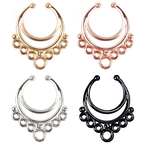 For puncturing between the septum and the cartilage (septum) most often use circulars. It is worth mentioning that initially such punctures were popular among punks. So they stood out from the environment and easily recognized each other in the crowd.