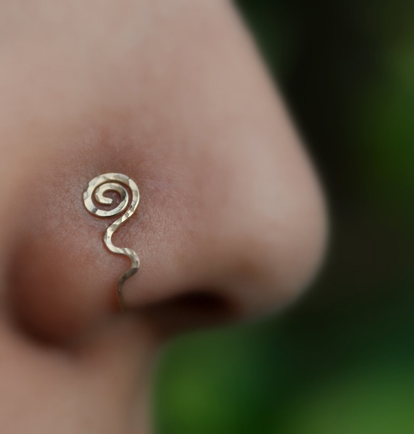 - Interestingly look miniature nostril earrings. The base in such specimens has a straight or hook-shaped structure with a decorative detail on one end.