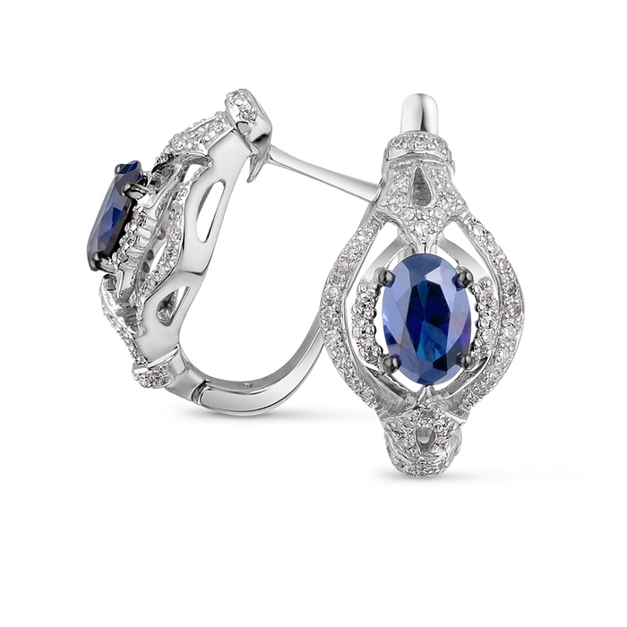 Attractiveness earrings with sapphires do not have to. White gold with its neutral modulations does not overshadow, but highlights the beauty of the stone. Sapphire in such a frame becomes deep, spectacular and rich. This decoration is best suited for blue-eyed blondes.
