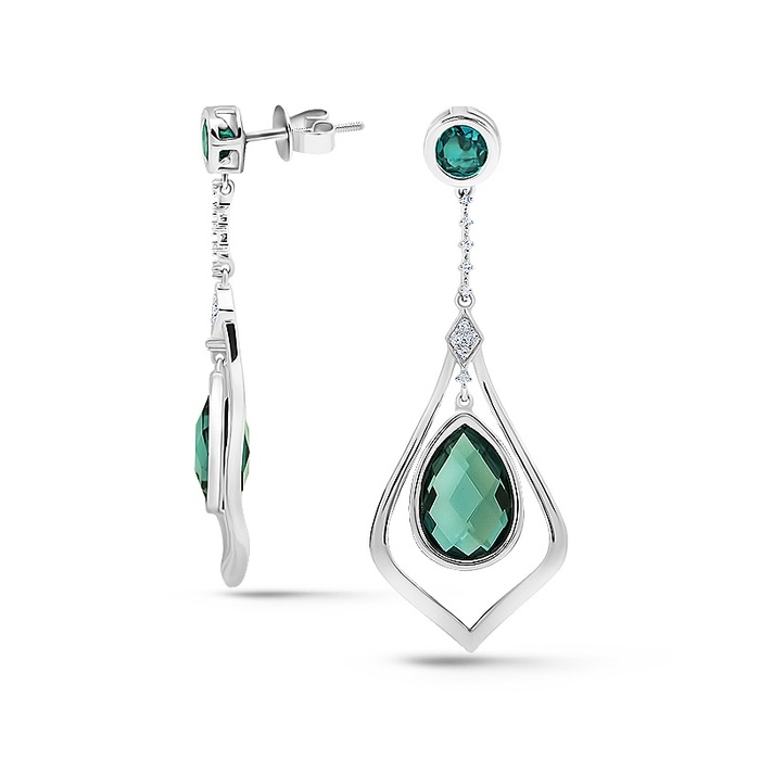 Earrings with cubic zirconias, though they are affordable, but look no worse than products with more expensive stones. The fianit is created artificially, but from this its exclusivity does not fade. This stone is easy to color, which opens up unlimited possibilities for designers to create amazing products.