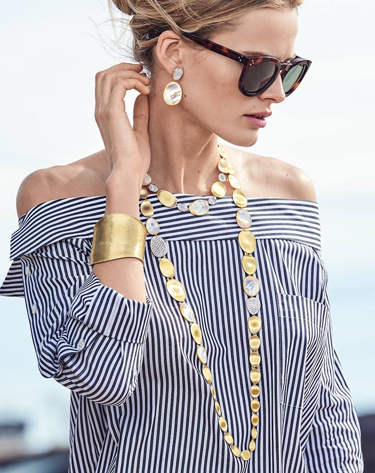 Long jewelery is valued for its ability to favorably emphasize the shape of the face, highlight the neck and attract the eye to the neckline cut. With this decoration you can easily create a festive mood.