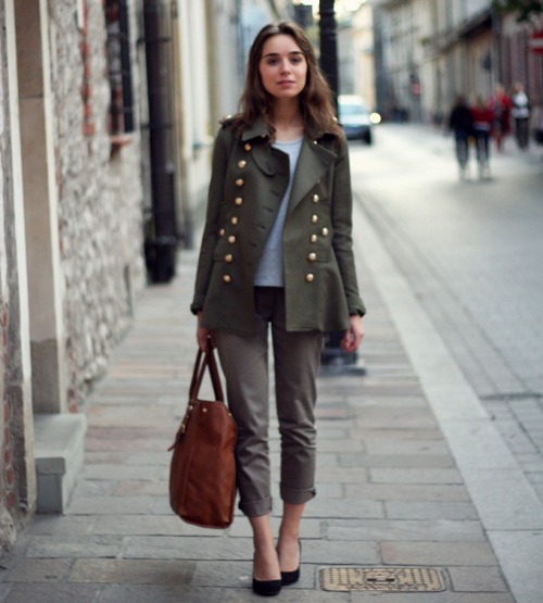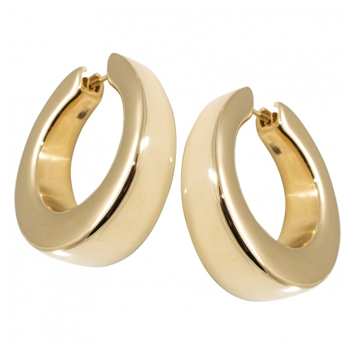 Military style will ideally complement the congo-shaped earrings in the form of large rings. There are models with a French clasp, a clip and a ring, special jewelry for piercing.