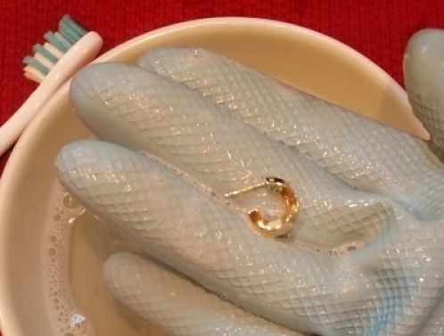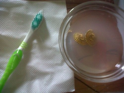 Suitable for cleansing products wine, wine alcohol or vinegar. They are moistened with a cotton swab, rubbed jewelry, washed well under water and dried. Ease of care will provide special wipes or liquid, sold in jewelry departments. The workshops offer ultrasonic cleaning service.