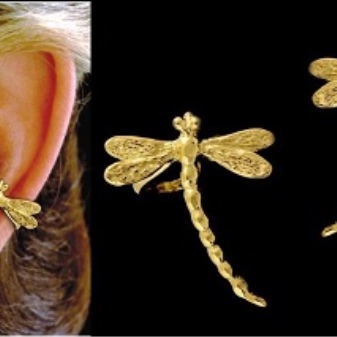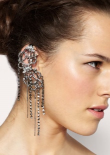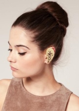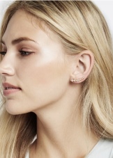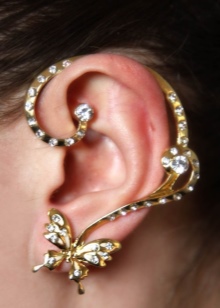- The most popular earrings that do not imply a puncture in the ear and attached to it with special cuffs. These cuffs hold on to the outer or middle part of the ear. They are a reliable device that allows you not to think about the size of the decoration.Even very massive earrings will firmly hold by means of such clips, provided that you fix them correctly.