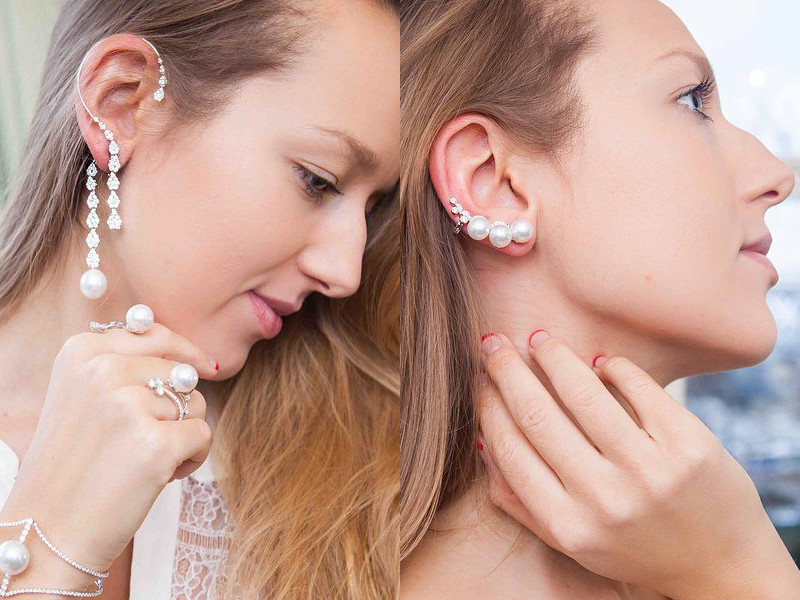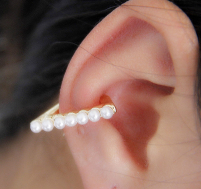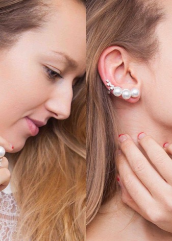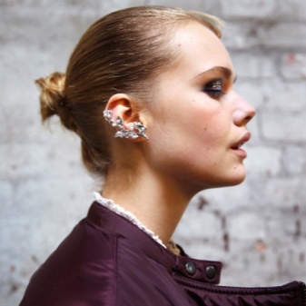 Contrary to the opinion of the excessive extravagance of such earrings, there are small cuffs that you can wear even for a business meeting. As a rule, they are made of silver and decorated with delicate low-key stones or pearls.