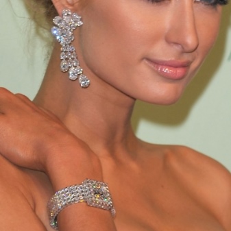 Graceful thin cuffs inlaid with shining stones are wonderful for a romantic evening. Jewelery made of gold with diamonds looks very impressive - simple, elegant, expensive.
