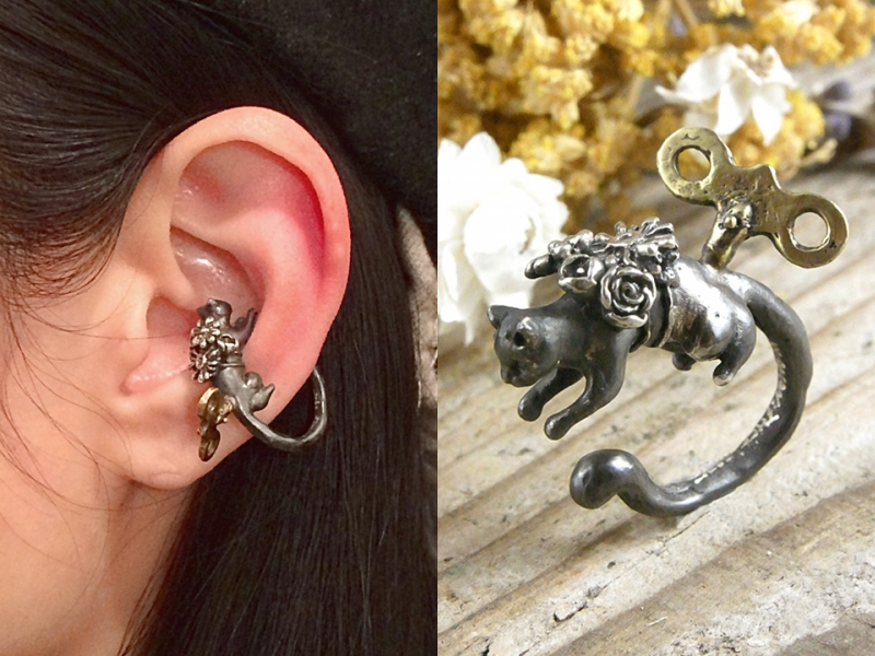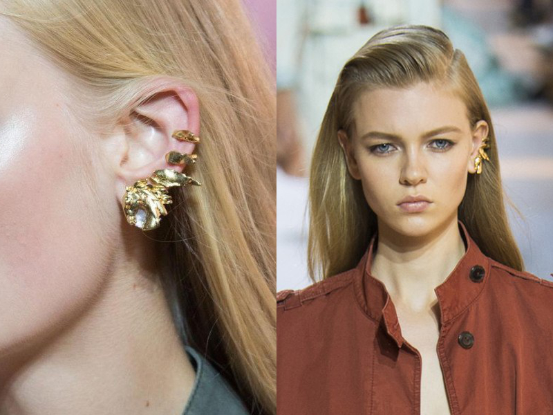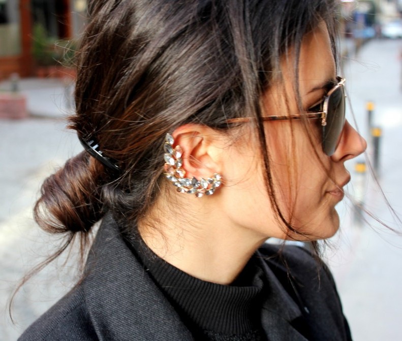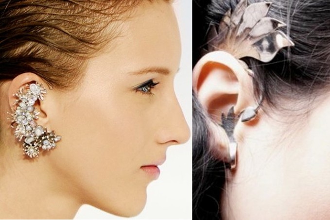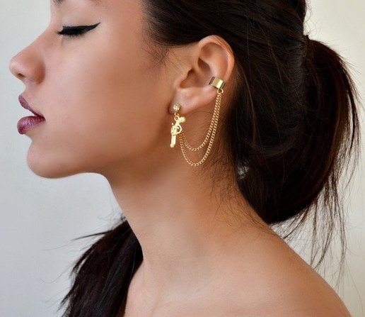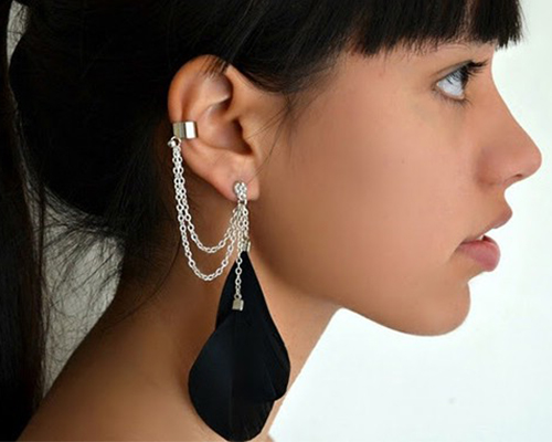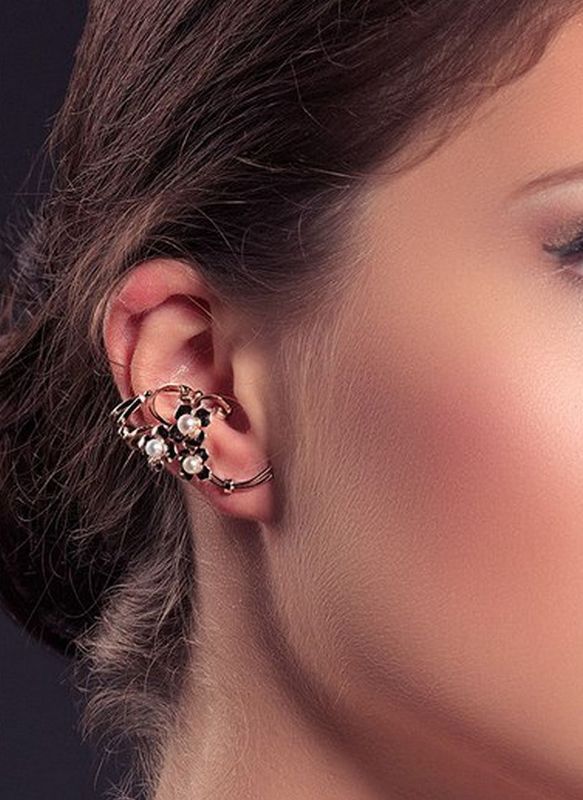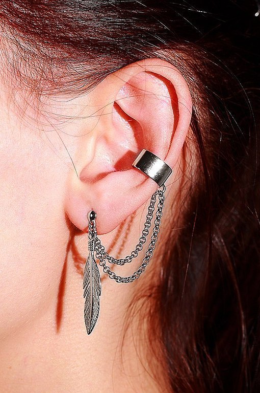 Cuffs are worn only on one ear. Accordingly, they are right and left. Therefore, you should think over your image in advance and to the smallest details. On the other you wear a regular earring that will fit your look.