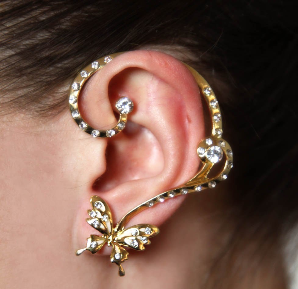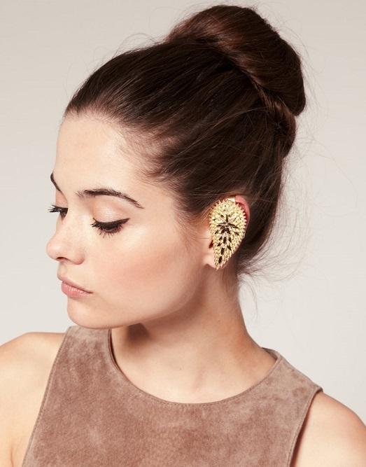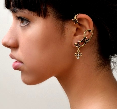 In ancient times, cuffs were decorated with elegant ears of famous beauties. Evidence of this we can see in the museums of the world. Long since earrings which fasten on all ear are popular in India. It is easy to remember that it was Indian films that once showed us for the first time the charm of these decorations. Until now, the national wedding dress of an Indian bride necessarily includes beautiful cuffy earrings.