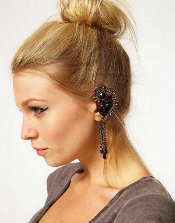 With these earrings, stylists are advised to wear hairstyles in which hair is combed to the side. Then the ear, decorated with caffe, will be the focus of attention of others. Very beautifully combined with the French braid, "ponytail" and the classic neat "shell".