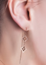 Chain earrings are usually quite long and heavy. They can pull the ear down. Perpetuals long ago moved from everyday life to a world where earrings are worn for literally a few hours. Propevka or chains - ideal for a photo shoot or a short print. However, even for such cases there are more suitable types of locks.