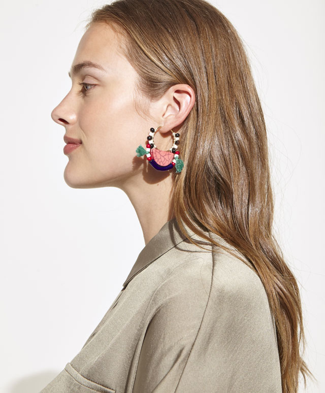 Earrings with a ring-type lock look on the ears as if the lock does not exist at all. Earring in the form of a ring (usually of large diameter) is located in the ear, as if it passes through a lobe through. In fact, a small pin is hidden inside the ring, which perfectly fixes the earring.