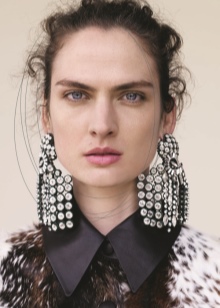 The most feminine and refined clips with pendants are rightfully recognized. Such elongated versions can be complemented with beads and various stones of natural and artificial origin. Especially gracefully look instances in which the suspension has a beautiful edging in vintage style. As a rule, these decorations are equipped with clasps - clips, which can be easily loosened or tightly pressed to the earlobe.