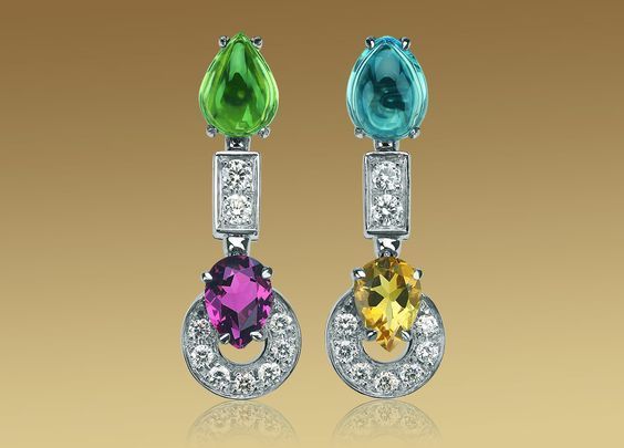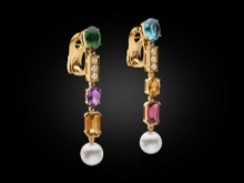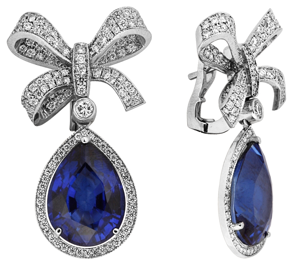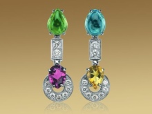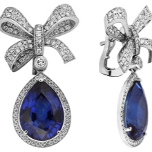 The most attractive luxury are earrings with blue sapphires, diamonds and emeralds.