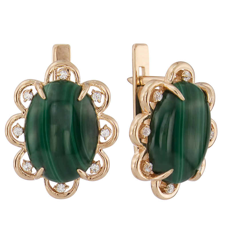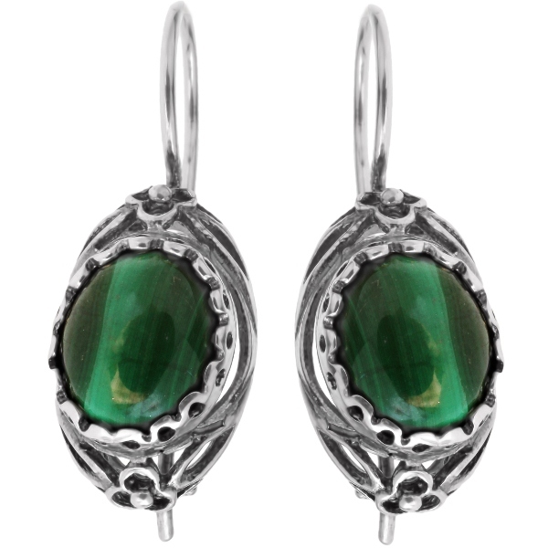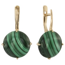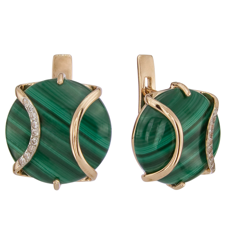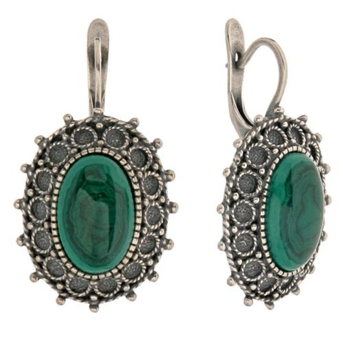 One of the brightest and extravagant earrings with malachite is rightly recognized. They can be made in any form. The most popular and sought-after models are with large round-shaped stones.