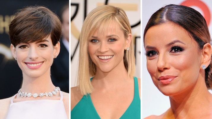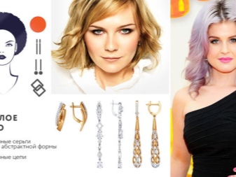 - Fashionable women who have an elongated or triangular face structure are recommended to wear round earrings. Laconic models in the form of ringlets will look most harmoniously. From exquisite products with pendants such ladies should be abandoned.