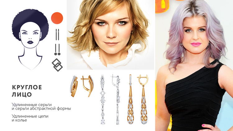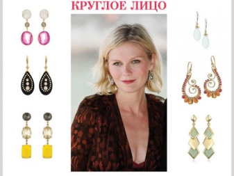 - Ladies with a round face should not wear round earrings. For them, literally created instances of square shape or elongated jewelry with elegant pendants. Similar products visually narrow the face.