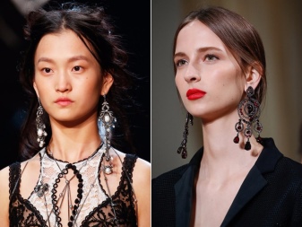 No lady can just pass by the earrings - chandeliers. Such models are distinguished by multi-tiered patterns on pendants. They can be made in any form.