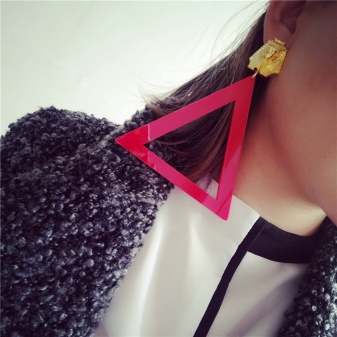 For many seasons in a row in a trend are earrings with pendants. They can be both miniature and very large.