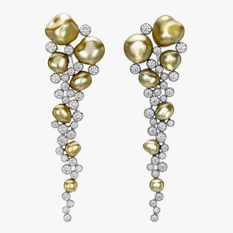 Amazing jewelry produces a brand called Mikimoto. From the chic range of the brand is worth highlighting elongated earrings Regalia Gold.