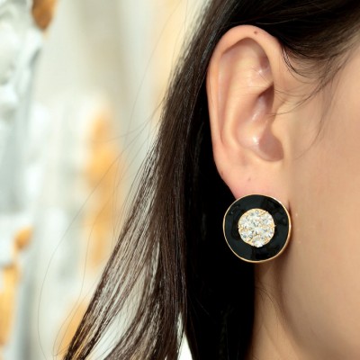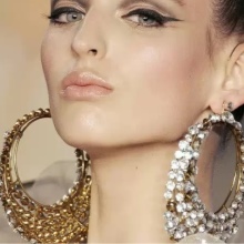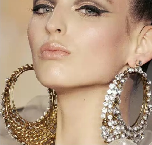 You can highlight the luxurious evening look with stunning large round earrings. They look insanely attractive and bold. Their design can not be called concise, even if they are decorated with a very small number of decorative elements.