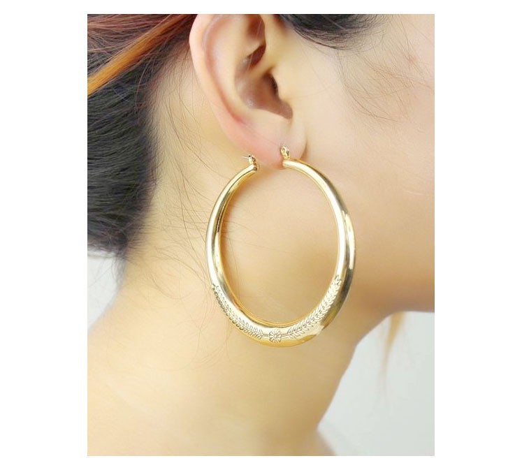 Gold looks very expensive and beautiful. These earrings are in harmony with almost any outfits and focus on the correct features of the lady's face.