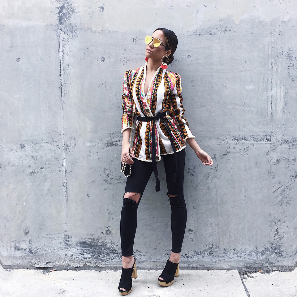 - Large items can be combined with charming dresses in dark or neutral colors;