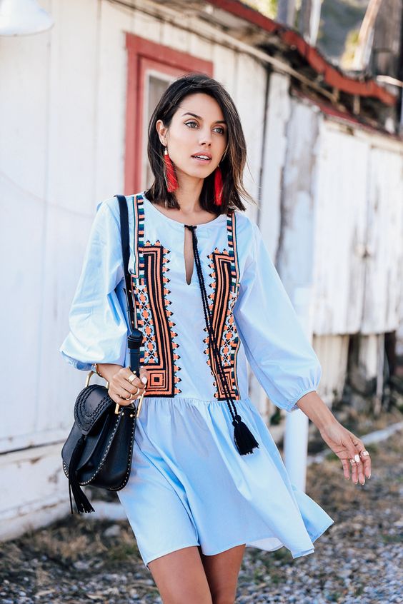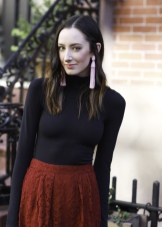 - Charming and flirty tassels will be in harmony with everyday sets. You can pick up a more strict outfit for them: a shirt or a blouse of a light shade, a pencil skirt or straight dark trousers.