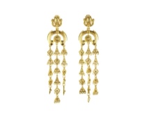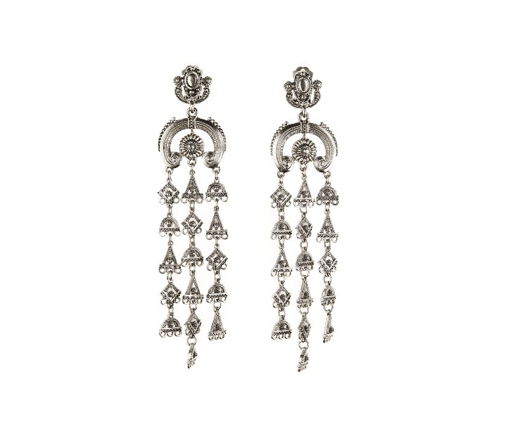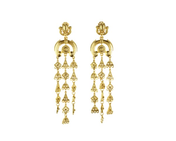 Decorations with this name resemble real palace chandeliers in a miniature version. They have a complex ornate form. These earrings are equipped with five levels of small pendants. The upper part in these chandeliers has unfinished flat circles, which are made in the old style. In the central part of these elements have the image of the sun.