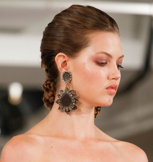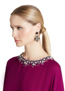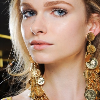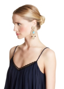 - It is possible to emphasize femininity and sophistication of the evening look with the help of earrings. The tone of jewelry and clothing should match.