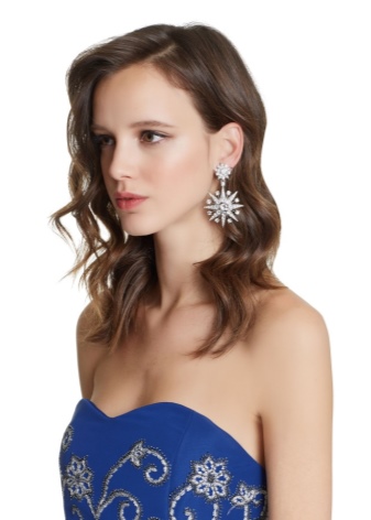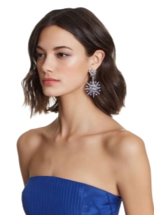 These stunning earrings are popular for the attractive shine of large Swarovski crystals. On a sunny day, these decorations will shine and glare. Especially popular are the specimens made in the form of an eight-pointed asterisk. In the center of such a beautiful pendant there are large oval-shaped stones. Rays of stars are complemented by stones - droplets. Resist the beauty of such jewelry is simply impossible!